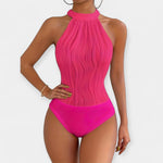 Elegantní a působivé, tento živý růžový celkový body s výstřihem a decentním řasením zdůrazňuje ženskost se stylem. Ideální na pláž nebo k bazénu, nabízí lichotivé padnutí a pohodlí po celý den.