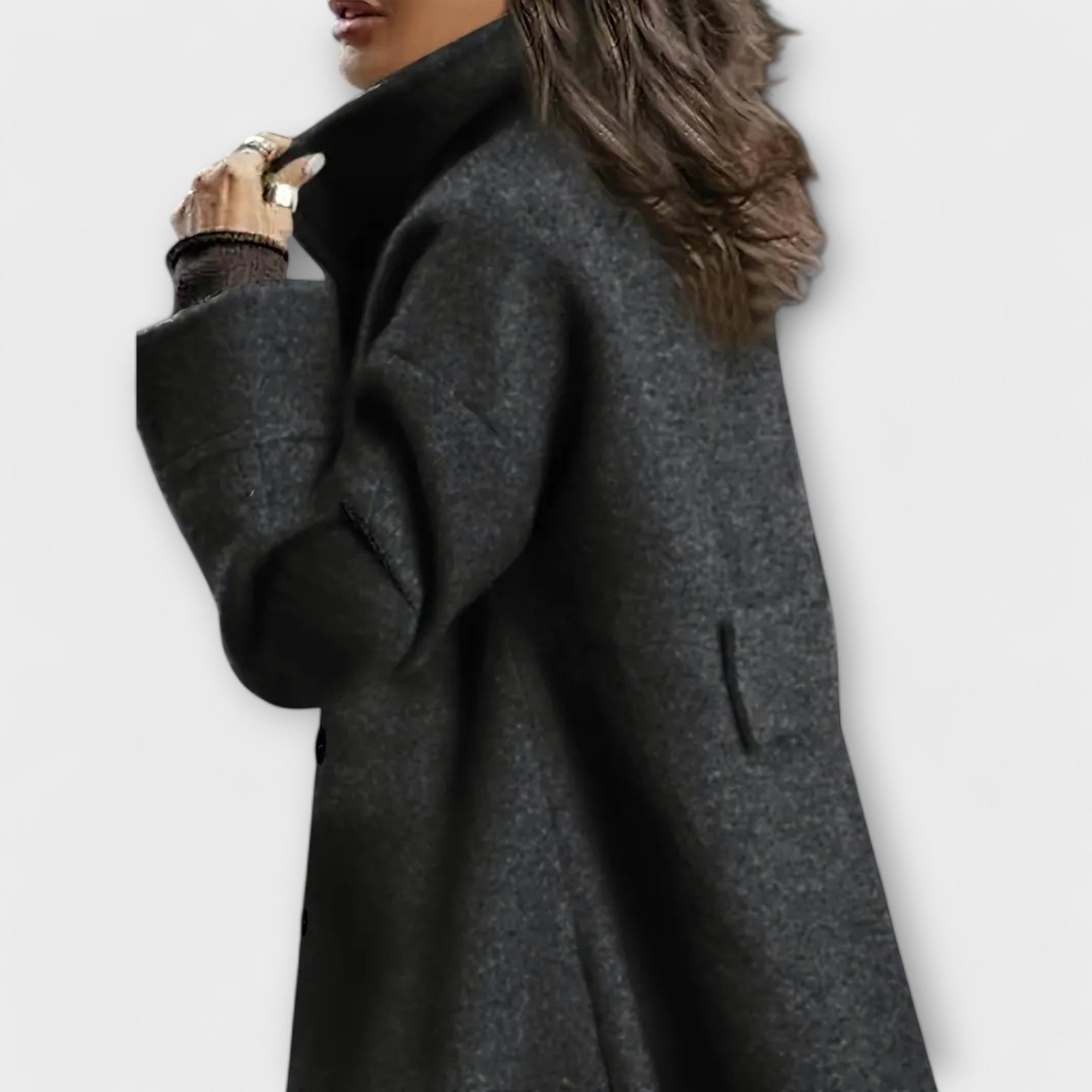 Vyroben z prémiové tepelně izolační tkaniny, zaručuje maximální teplo bez kompromisů v pohodlí. Jeho silueta poskytuje uvolněný a chic vzhled, ideální pro nošení přes svetry nebo šaty.