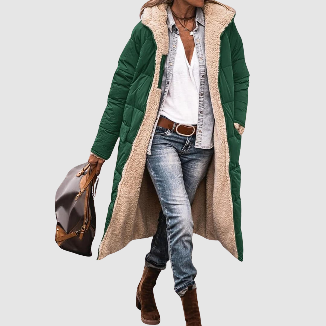 Dámský dlouhý zimní kabát s kožíškovou podšívkou