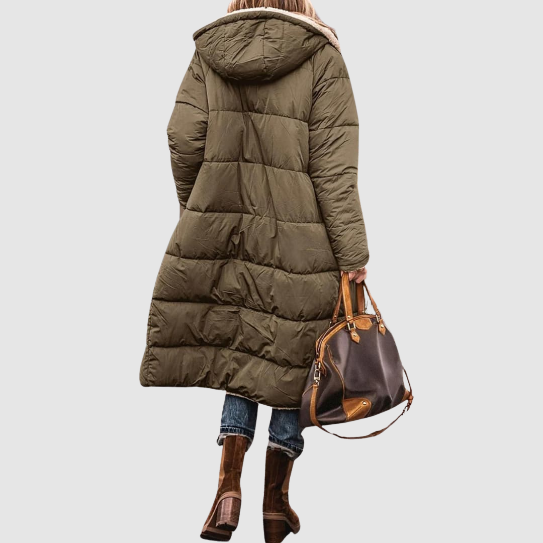 Tento kabát je dokonalou volbou pro chladné zimní dny. Díky dlouhému střihu a hřejivé vnitřní podšívce zaručuje maximální pohodlí a ochranu před mrazem. Moderní design s praktickými kapsami dělá z tohoto kabátu univerzální kousek pro každodenní nošení i cestování.