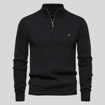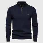 Tento svetr se zipem u krku kombinuje klasický styl a moderní funkčnost v jednom kusu oblečení. Jeho měkký úplet se perfektně přizpůsobí tělu a poskytuje pohodlí a sofistikovaný vzhled pro každou příležitost. Ideální jak pro pracovní den, tak pro neformální výlet, tento univerzální design obohatí váš šatník o nádech mužské elegance.
