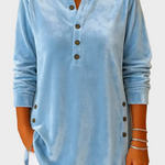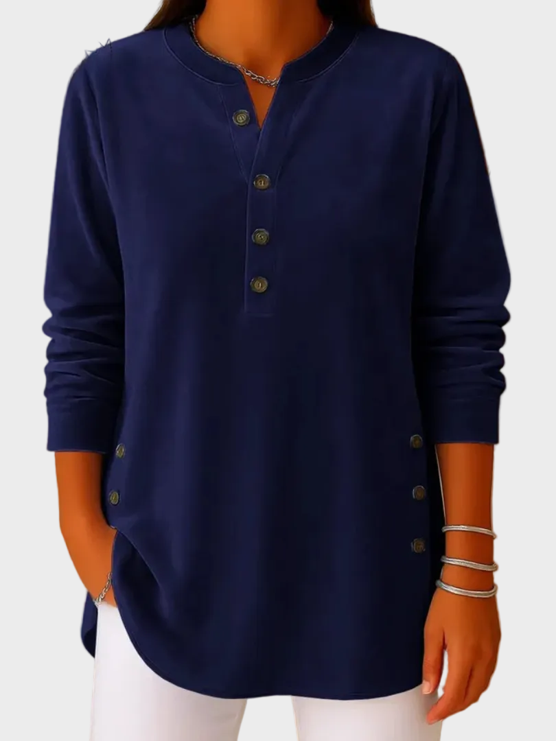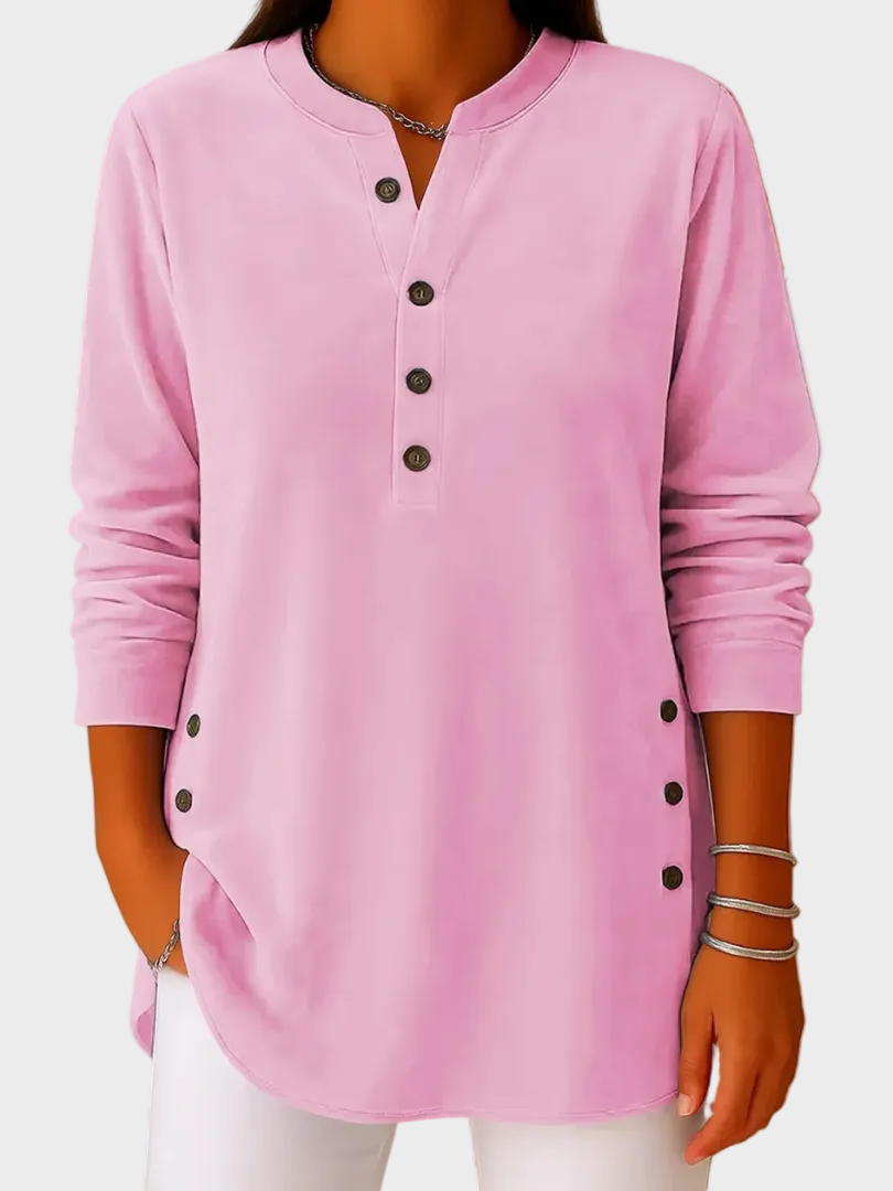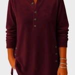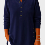 Zůstaňte styloví a pohodlní s Meredith - Klasický pulovr s kulatým výstřihem. Navržen pro ženy, které ocení nadčasový styl a pohodlí, tento pulovr má klasický kulatý výstřih a knoflíkovou dekoraci na bocích pro špetku elegance. Ať už se chystáte na neformální výlet nebo relaxujete doma, MEREDITH™ nabízí dokonalou kombinaci pohodlí a elegance.