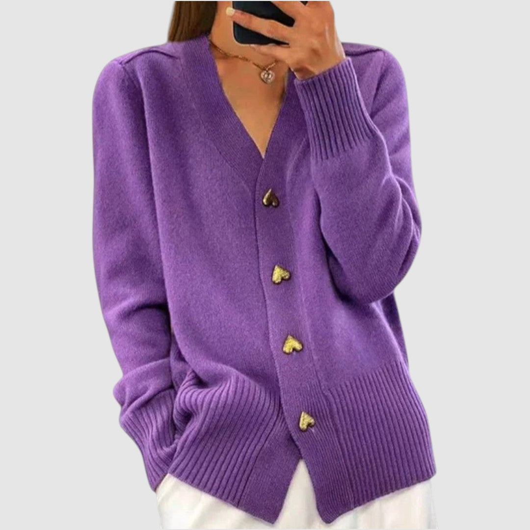 Elegantní cardigan s originálními knoflíky ve tvaru srdce