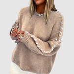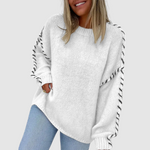 Tato mikina spojuje pohodlí a styl v jednom. Měkký pletený materiál je příjemný na dotek a zajistí komfort při každodenním nošení, zatímco dekorativní detaily na rukávech dodávají outfitu moderní a jedinečný vzhled.