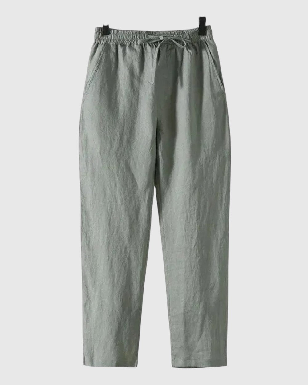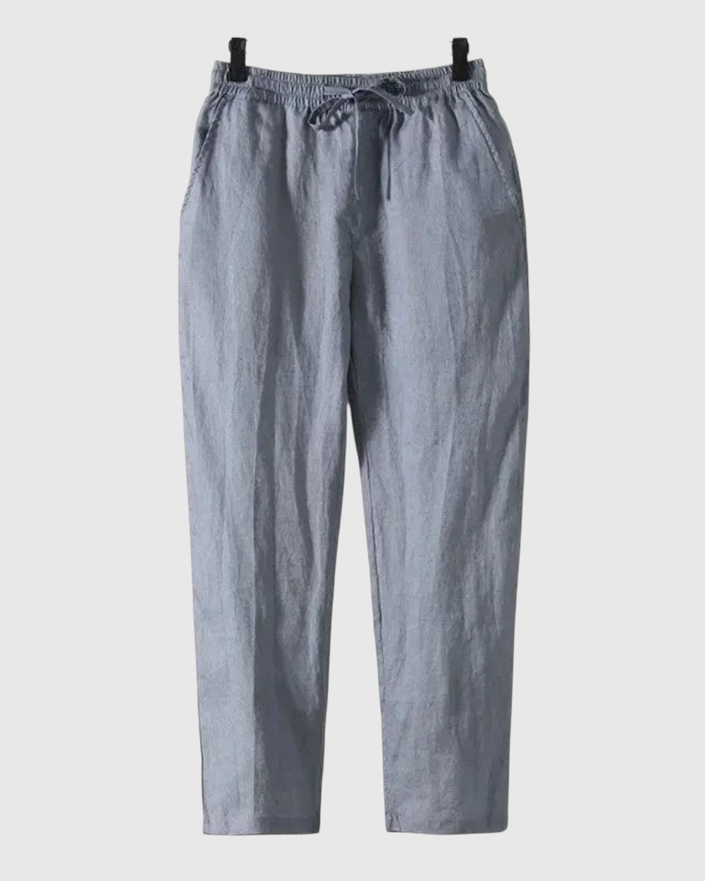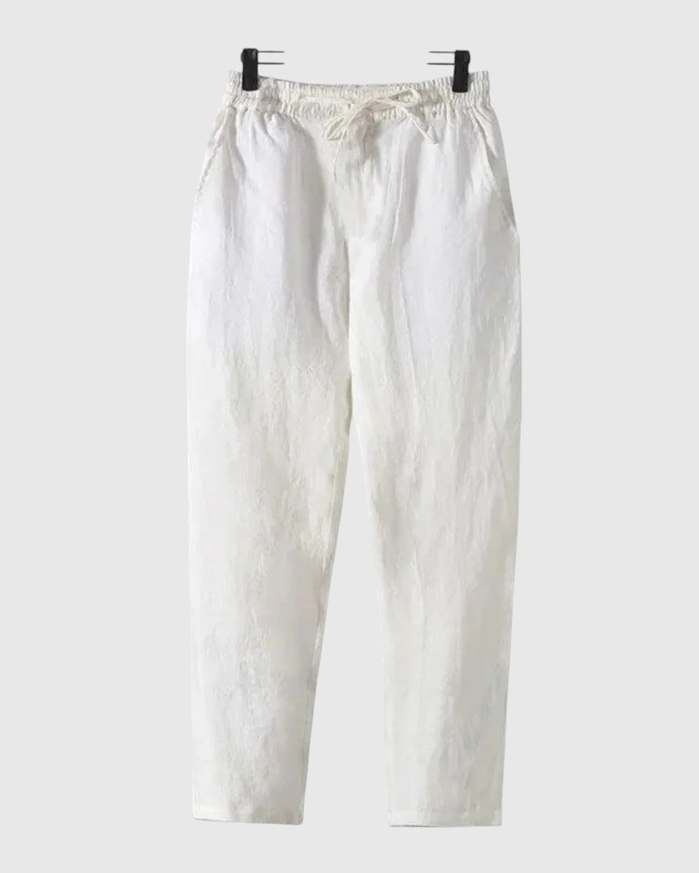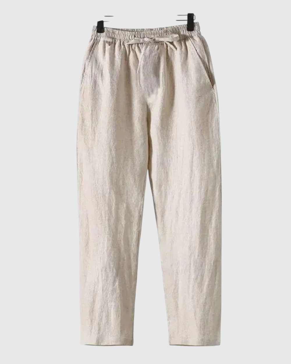 Lněné kalhoty Palm Springs byly navrženy pro muže, kteří si cení sofistikovanosti s uvolněným nádechem. Vyrobené z vysoce kvalitního lnu, tyto kalhoty nabízejí prodyšný a vzdušný pocit, přičemž zachovávají elegantní a upravenou siluetu - ideální pro teplé počasí, resortní oblečení nebo chytré casual styl.