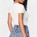 Lehké a svůdné, toto body s výstřihem ve tvaru V a krátkým rukávem je ideální volbou na teplé dny a večerní výlety. Obepíná tělo s ženskostí a decentně zvýrazňuje siluetu s elegancí.