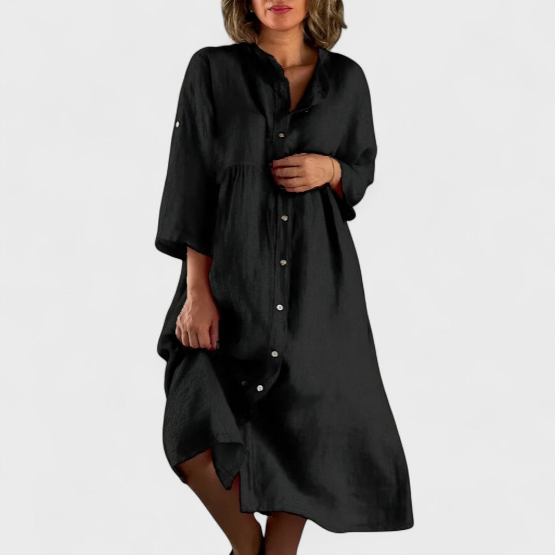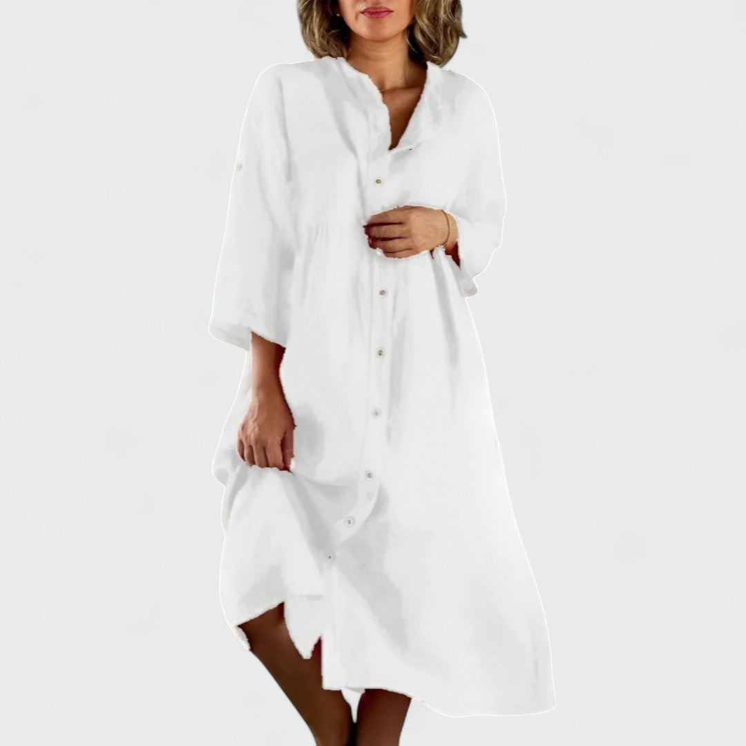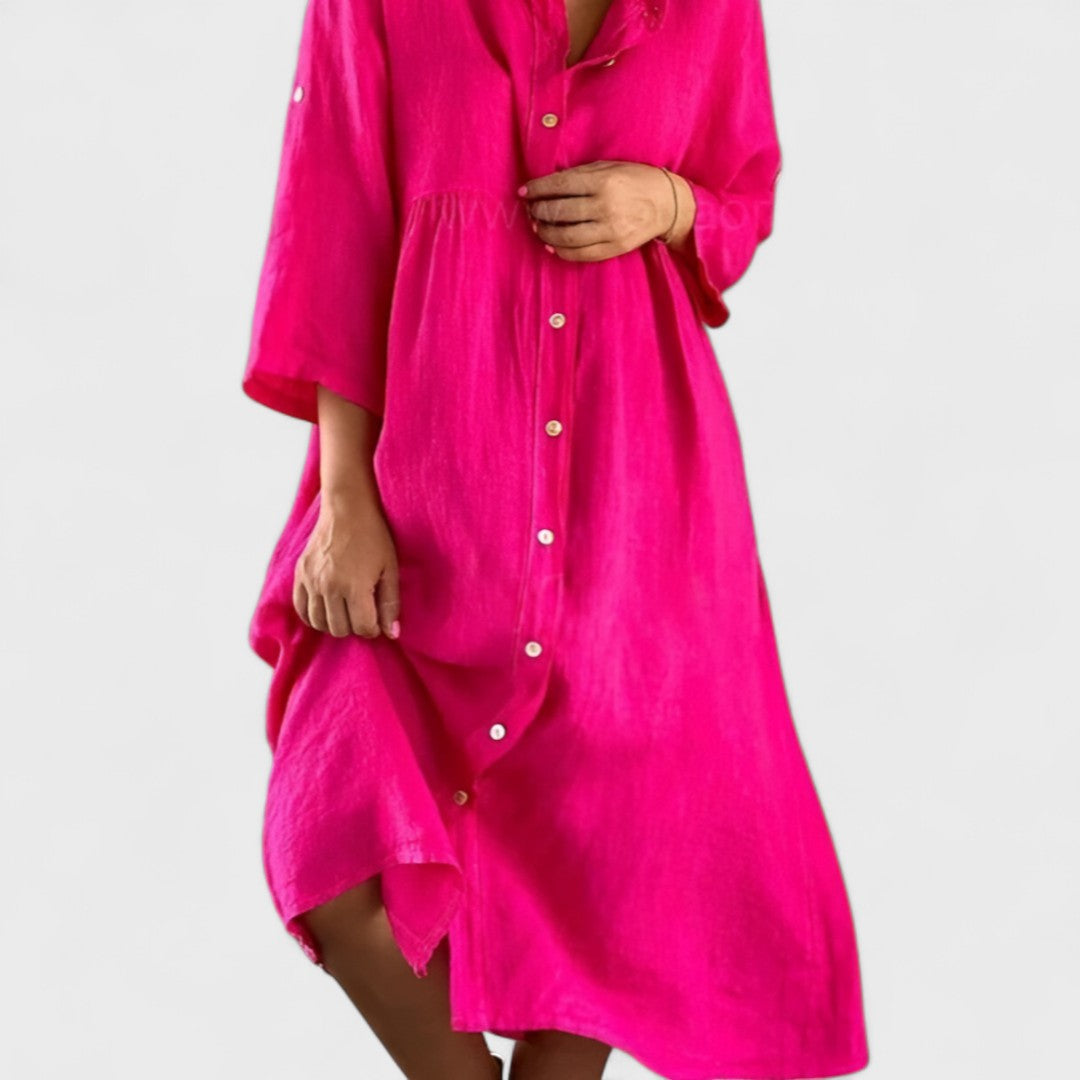 Isa - Bavlněno-lenová Košilová Šaty