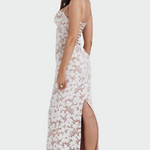 Krajka s květinovým motivem – jemně působí na dotek a dodává šatům romantický a nadčasový vzhled.