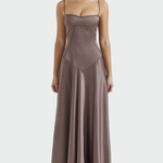 Dámské elegantní saténové maxi šaty s tenkými ramínky
