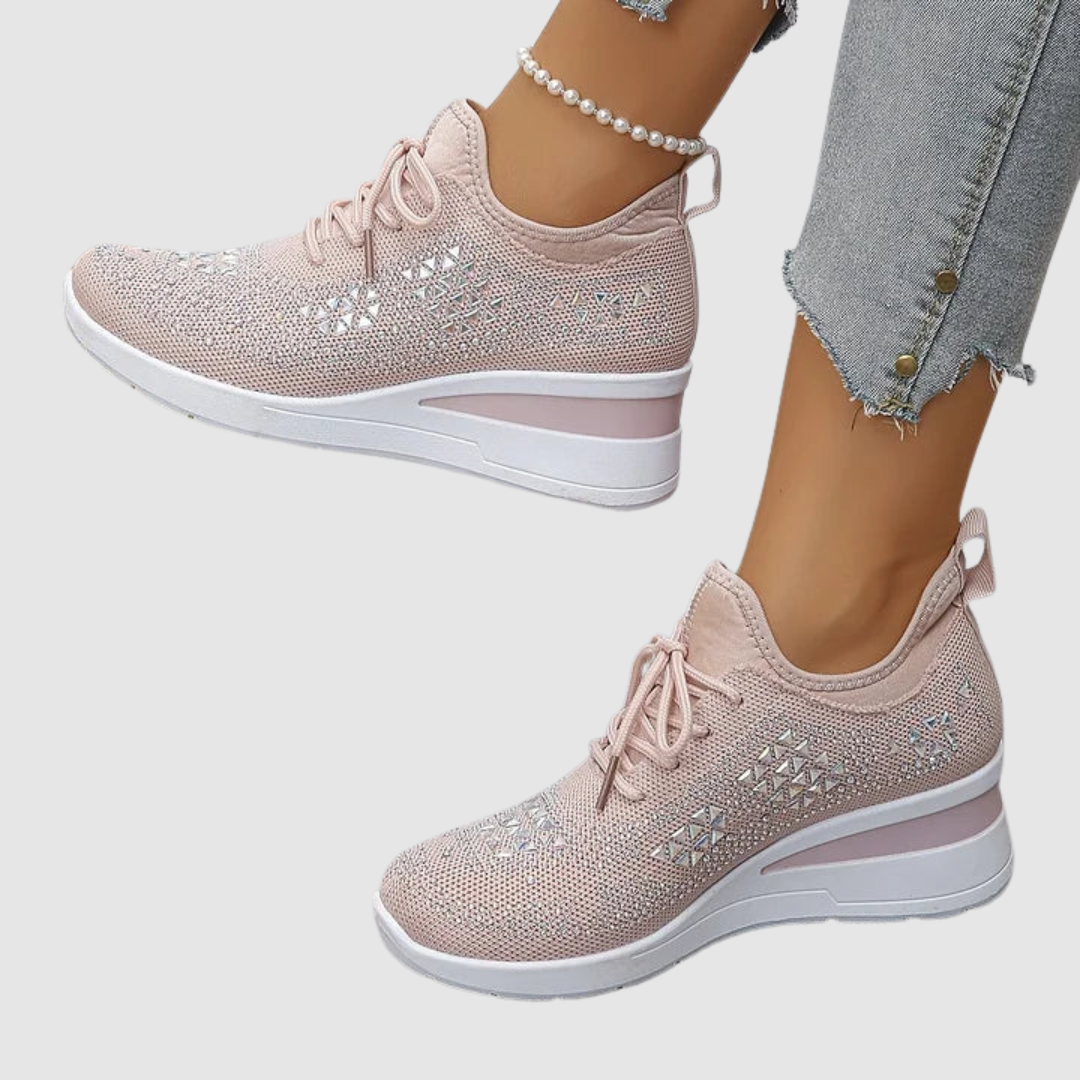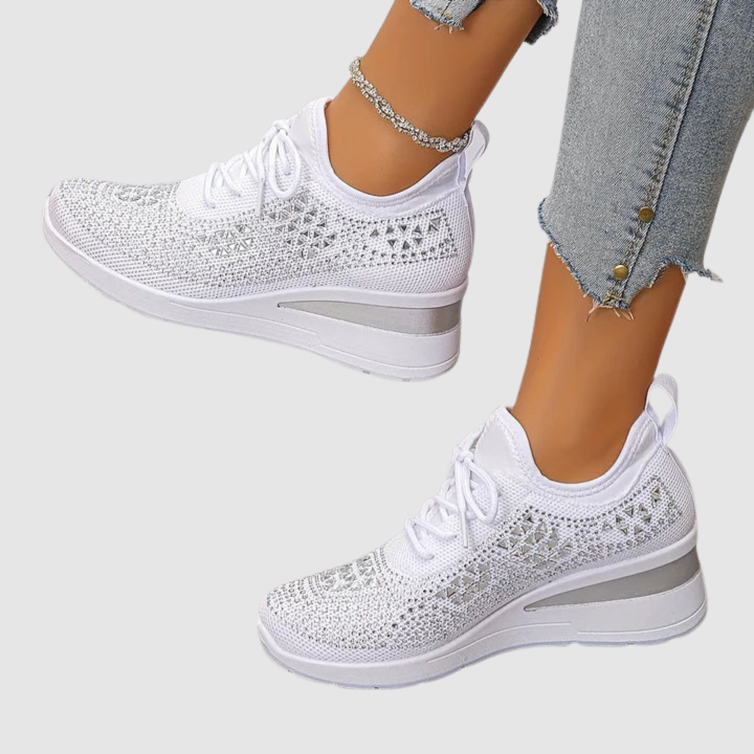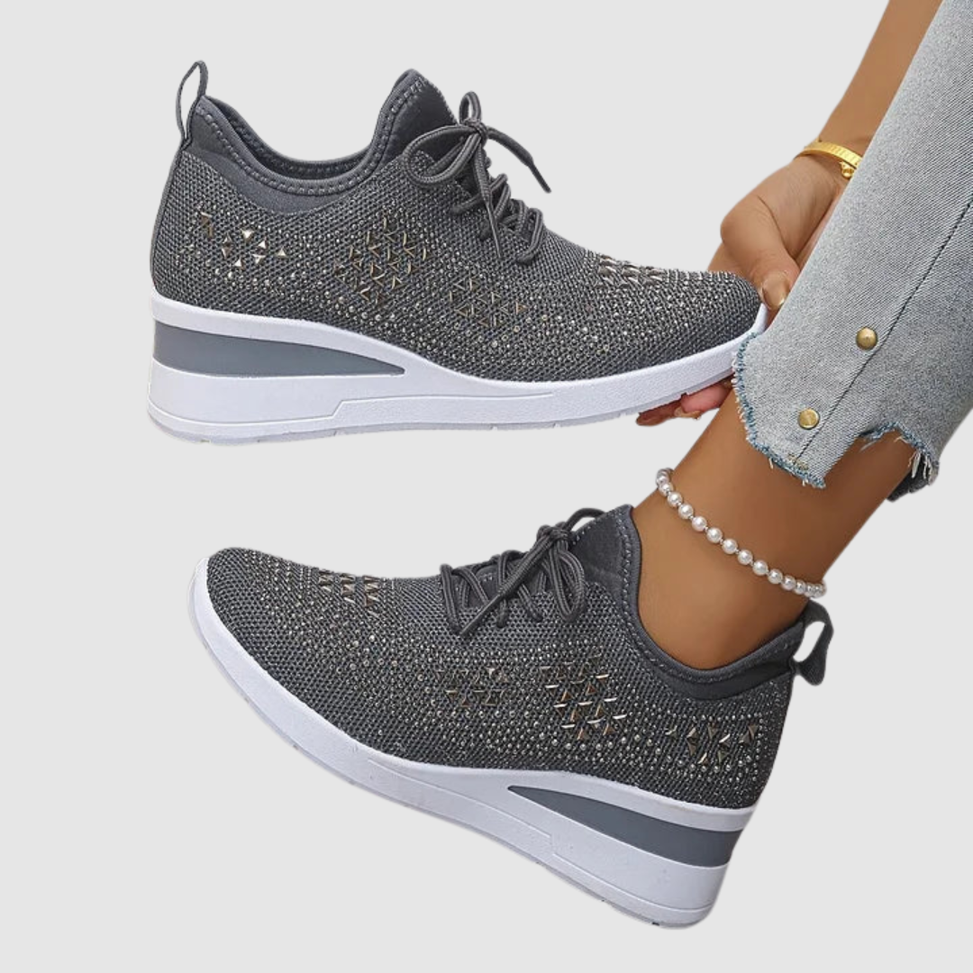Tyto tenisky spojují pohodlí a styl v jednom. Jsou lehké, prodyšné a díky zdobenému designu s kamínky se stanou výrazným prvkem každého outfitu – ať už sportovního nebo ležérního.