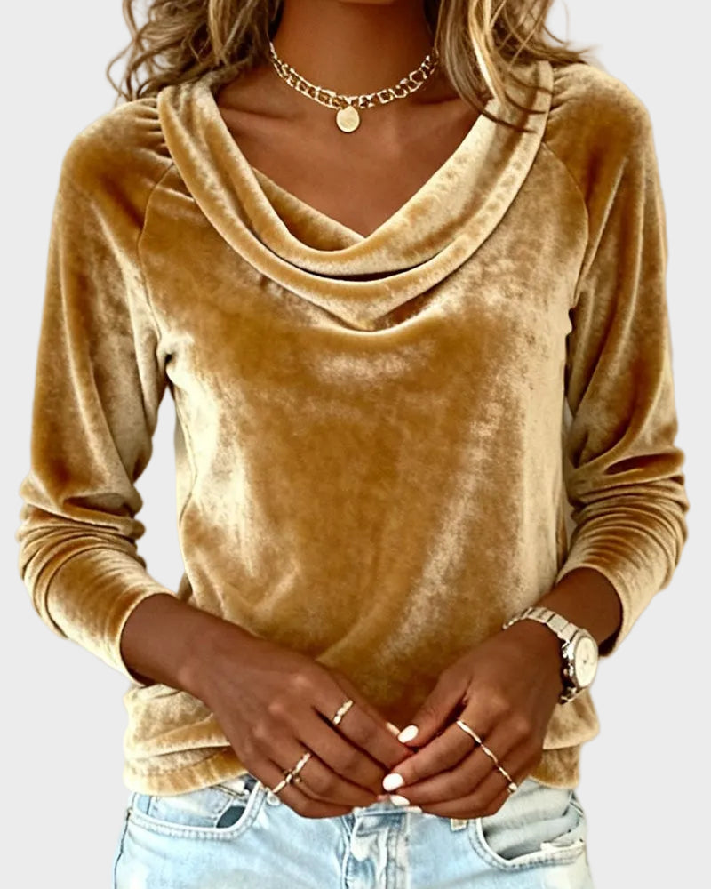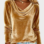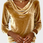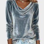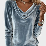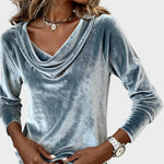 Tento sametový top spojuje moderní eleganci s neodolatelným komfortem. Jeho draped výstřih vytváří ženskou a volnou siluetu, zatímco měkká, teplá tkanina nabízí útulný pocit ideální pro tuto sezónu. Snadno se nosí každý den a dodává nádech sofistikovanosti všem vašim outfitům, od casual chic po formálnější příležitosti.