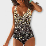 Vyrobeno z kvalitního, měkkého polyesteru a elastanu, tyto plavky nabízejí maximální pohodlí po celý den. Unikátní černobílý vzor a pohodlný střih s vycpávkami na prsou zajišťují elegantní vzhled, zatímco hluboký V-výstřih zdůrazňuje vaši divokou stránku.