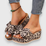 Elegantní sandály na slip-on s pohodlnou platformou a ženskou mašlí. Klínový podpatek zajišťuje lichotivý vzhled a optimální komfort při nošení.