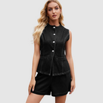 Nela - Elegantní bezrukávová vesta s knoflíky a šortky