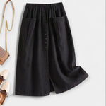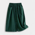 Přirozená textura a nenucený styl v sukni, která kombinuje retro kouzlo s každodenní praktičností. Vysoký pas ženským způsobem obepíná siluetu, zatímco přední kapsy nabízejí pohodlí a funkčnost.