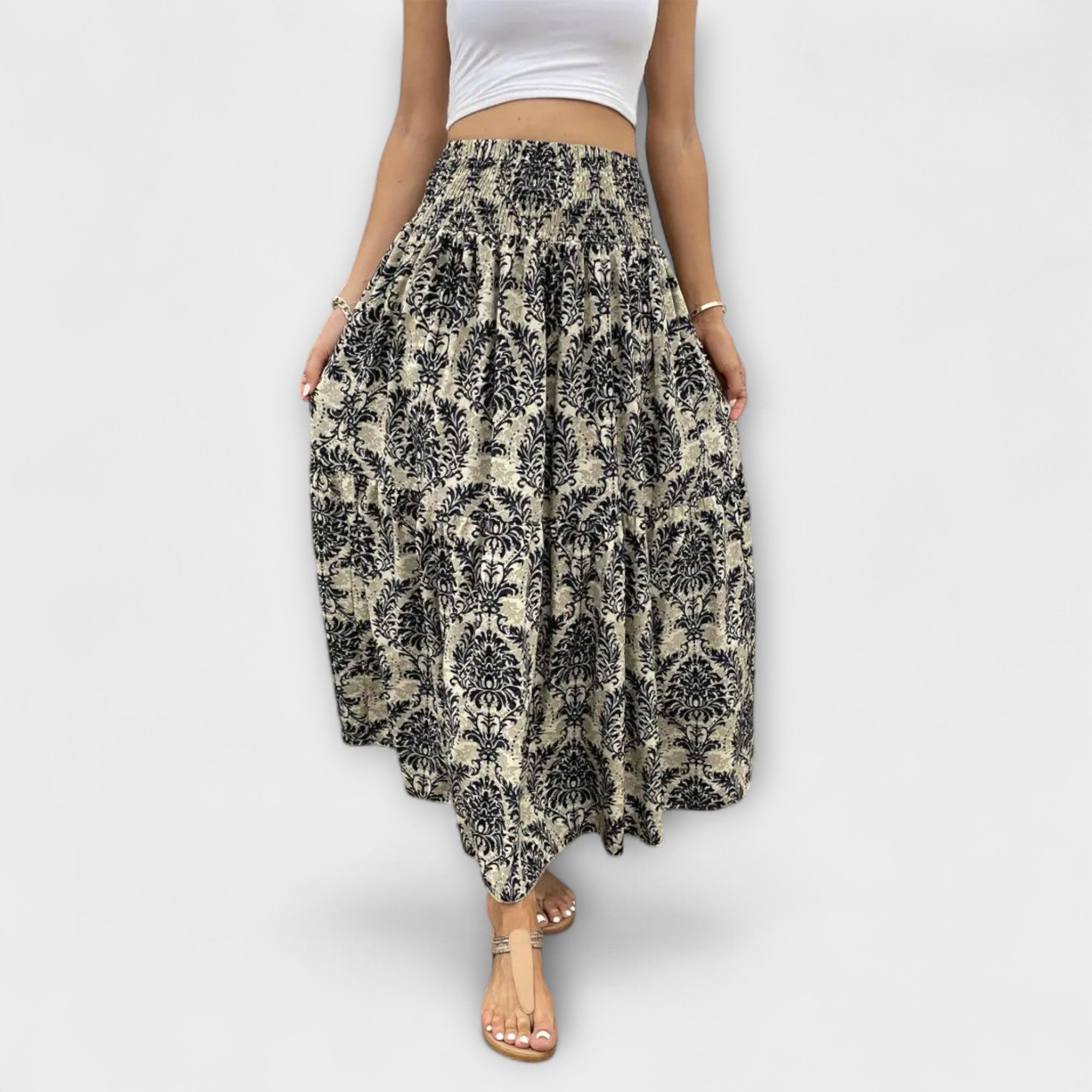 Objevte čistou pohyblivost s touto sukní, která vypráví příběhy. Jedinečný vzor a pohodlný materiál dodávají vašemu vzhledu nádech zvláštní elegance.
