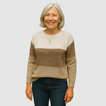 Tento pletený svetr v moderním blokovém designu je ideální volbou pro každodenní nošení. Pohodlný střih a příjemný materiál vám zajistí maximální komfort, zatímco stylové pruhy dodají outfitu svěží a elegantní vzhled.