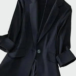 Elegantní sako s nadčasovým střihem a moderním designem. Má klopu, přední zapínání na jeden knoflík a dlouhé rukávy se zdobnými knoflíky na konci. Jeho rovný střih ho činí ideálním jak pro pracovní příležitosti, tak pro volnější chvíle. Kousek, který dodává styl a šarm každému outfitu.