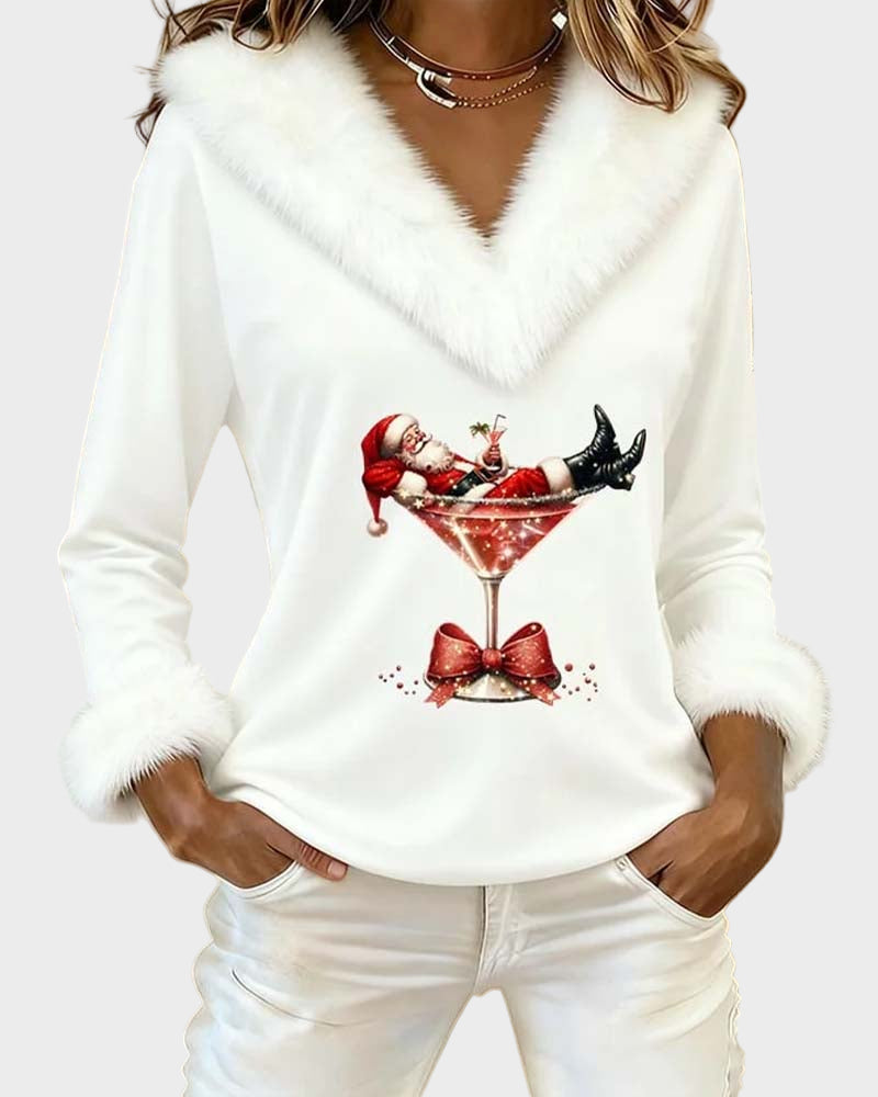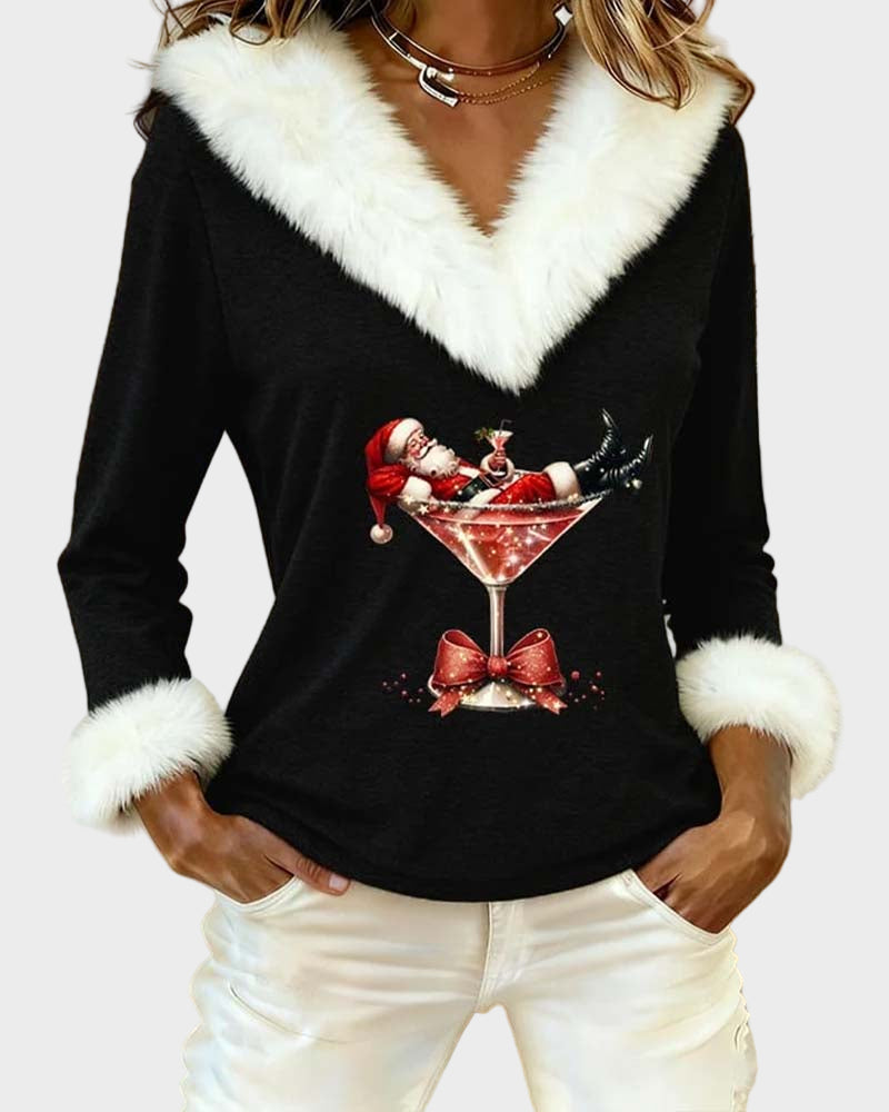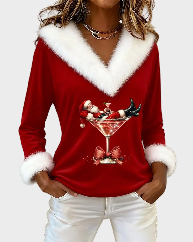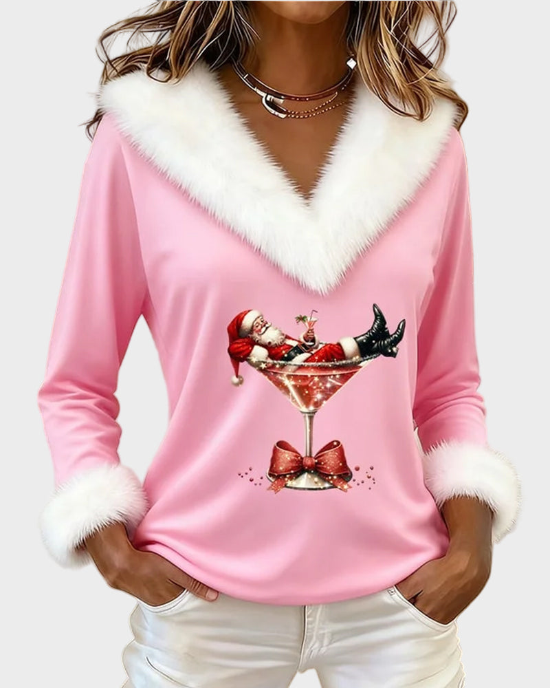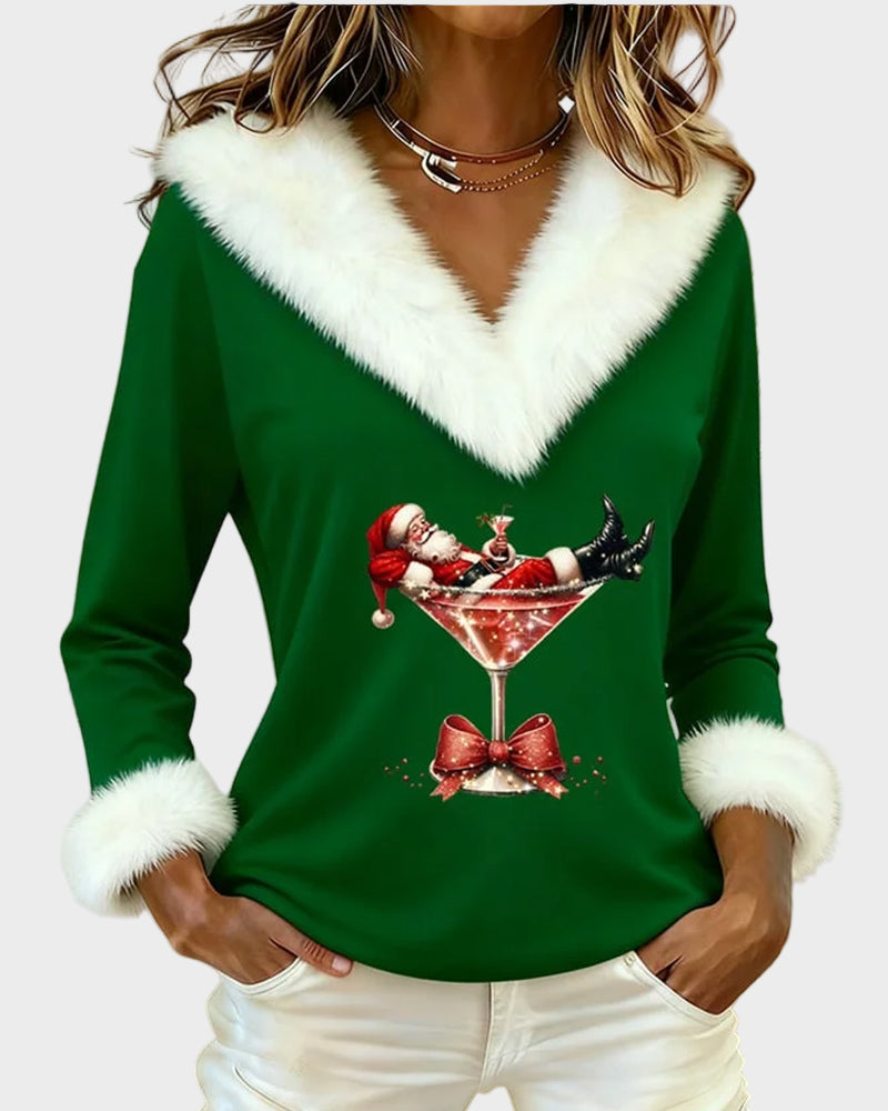 Emily – Vánoční top s dlouhými rukávy a kožíškem