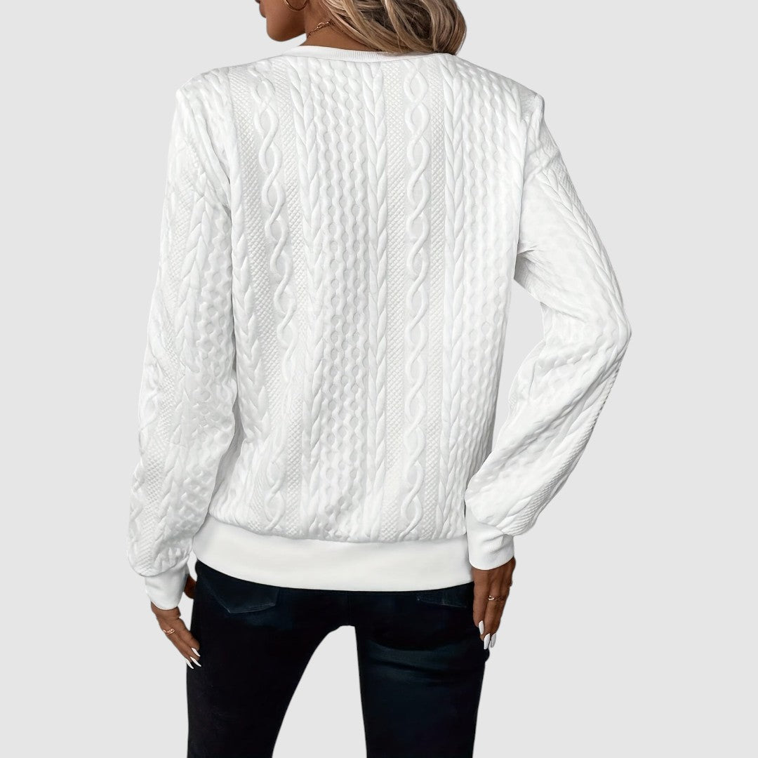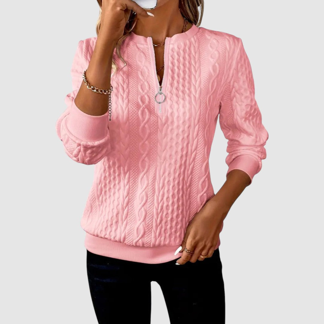 Tato mikina kombinuje pohodlí s originálním designem. Díky pletenému vzoru působí elegantně a stylově, zatímco praktický zip umožňuje upravit výstřih podle vašich potřeb. Perfektní volba pro každodenní nošení i volný čas.